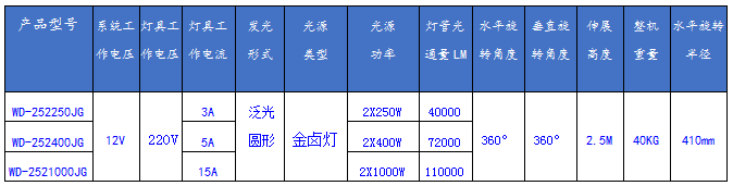 车载移动照明设备WD-252250JG/WD-252400JG/WD-2521000JG